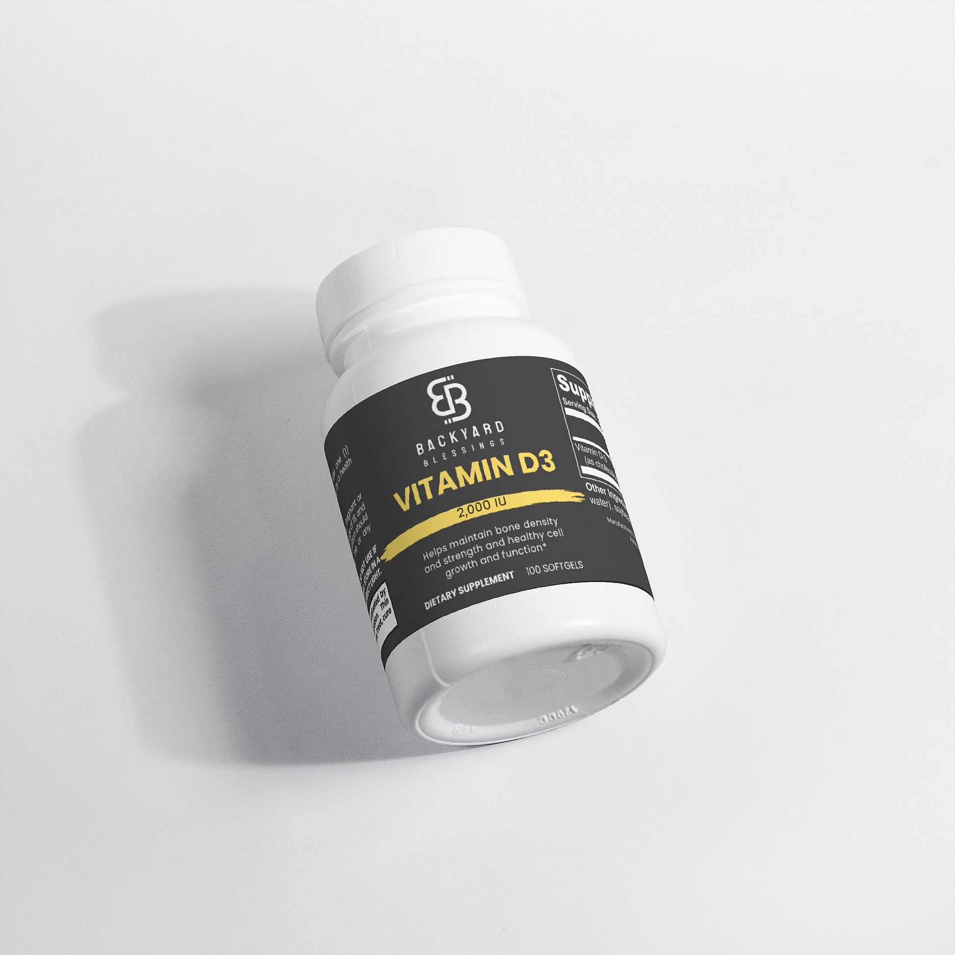 Ingredients: Vitamin D3 (as cholecalciferol), Softgel (gelatin, glycerin, water), soybean oil, corn oil.